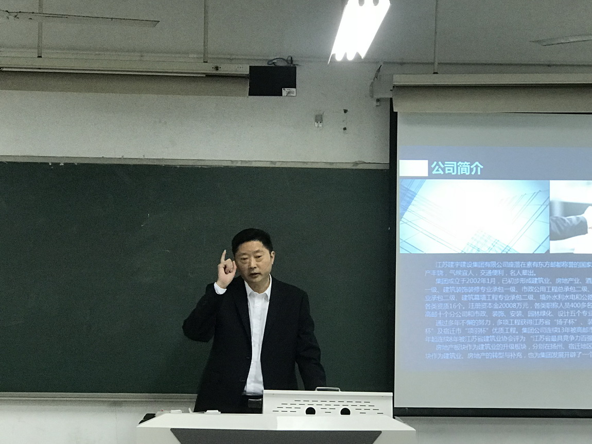 11月7日下午,集團公司在南京工業(yè)大學(xué)土木學(xué)院仁智樓108室舉行了一堂生動的企業(yè)宣講會。南工大土木學(xué)院副書記周靜、集團董事長管民良、副總經(jīng)理張幫華、副總經(jīng)理張?zhí)焯?、辦公室主任張瑩等相關(guān)領(lǐng)導(dǎo)、老師和學(xué)生們出席活動。