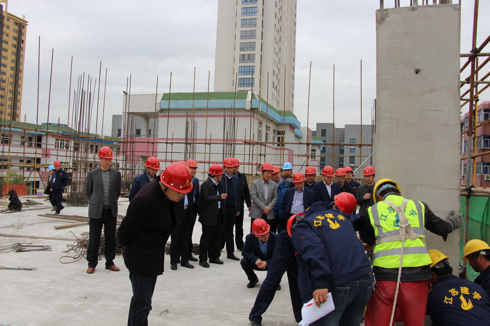 4月13日下午,高郵市副市長李生率市建管局徐曉君局長等相關(guān)部門領(lǐng)導(dǎo)一行15人蒞臨宿遷分公司,考察泗陽縣實(shí)驗(yàn)初級中學(xué)工程,集團(tuán)公司管民良董事長、管民祥總經(jīng)理、宿遷分公司湯真標(biāo)經(jīng)理等陪同視察。