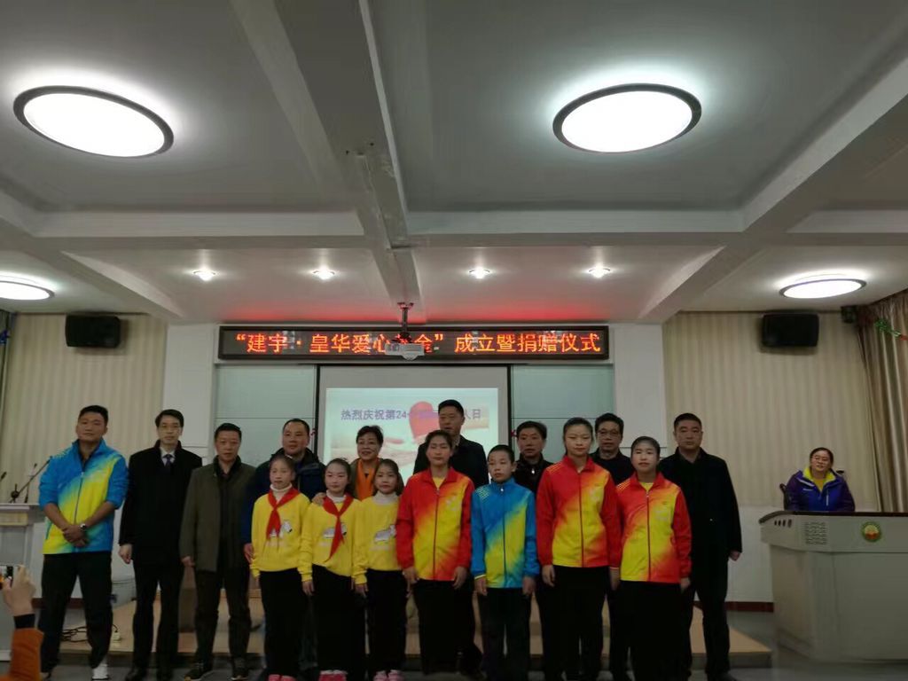 荷花塘特校劉春林校長致歡迎詞,對建宇?皇華愛心基金的捐贈表達了謝意和敬意,并表示按捐贈協(xié)議規(guī)范用好善款,發(fā)揮其最大功效。市教育局邵局長高度評價了建宇集團的此項善舉,對一直支持教育事業(yè)、熱衷公益的管民良董事長表示感謝,盛贊集團是高郵的重要企業(yè),是一個社會責任感很強的企業(yè),多年來得到了社會各界的好評。隨后董事長管民良代表集團捐贈,皇華國際大酒店王衛(wèi)紅董事長代表集團簽約,殘聯(lián)吉平副理事長為建宇集團及管民良董事長頒發(fā)“愛心單位”牌匾和“愛心使者”證書,特校學生還表演了精心準備的文藝節(jié)目。
