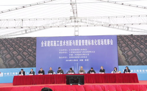 會前,與會人員觀摩了由中建三局集團有限公司承建的蘇州工業(yè)園區(qū)體育中心項目施工技術(shù)創(chuàng)新與質(zhì)量管理標(biāo)準(zhǔn)化現(xiàn)場和圖文展板。會上,省協(xié)會質(zhì)量與技術(shù)分會趙華中會長作工作報告,闡述了技術(shù)創(chuàng)新與質(zhì)量管理的重要性、企業(yè)和協(xié)會的各自任務(wù)。省住建廳領(lǐng)導(dǎo)紀(jì)迅同志作了重要講話,激勵各企業(yè)勇于創(chuàng)新,以中建三局蘇州體育中心項目為榜樣,取長補短,為江蘇在后續(xù)建筑業(yè)現(xiàn)代化改革中貢獻力量。