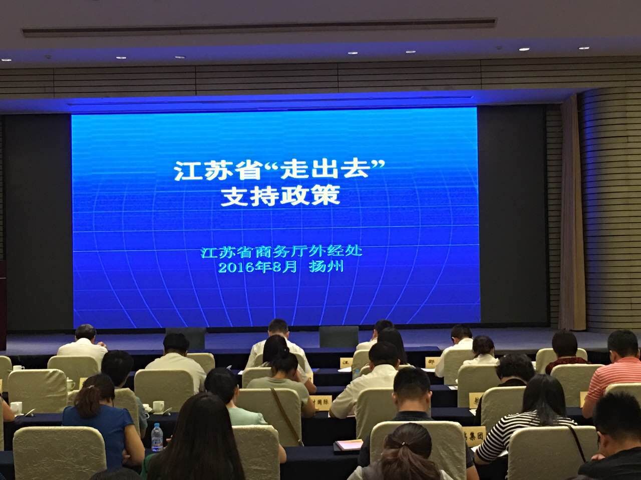 近日,由省商務(wù)廳組織中國出口信用保險公司江蘇分公司、省金融辦、省財政廳、省建行共同舉辦主題為《發(fā)揮信保作用 服務(wù)“一帶一路”》的“走出去”全省首場政策發(fā)布會在揚州迎賓館召開。全省60多家優(yōu)質(zhì)外經(jīng)企業(yè)參加,我公司作為新批外經(jīng)資質(zhì)企業(yè)參加此次會議。