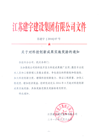 關(guān)于對科技創(chuàng)新成果實施獎勵的通知