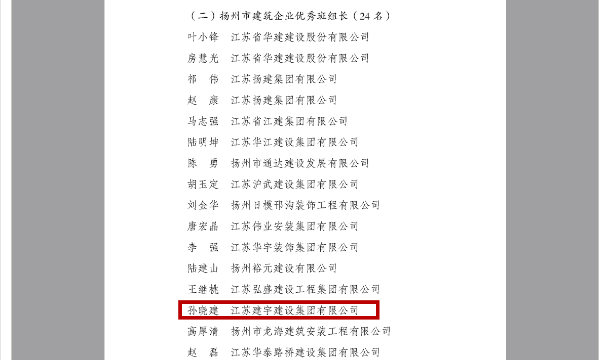 近日,集團又一次被揚州市人民政府評為2020年度揚州市建筑業(yè)先進企業(yè),這是集團第十次獲此殊榮。同時集團第五次榮獲2020年度揚州市建筑施工安全生產(chǎn)先進集體,孫曉建同志榮獲優(yōu)秀班組長。