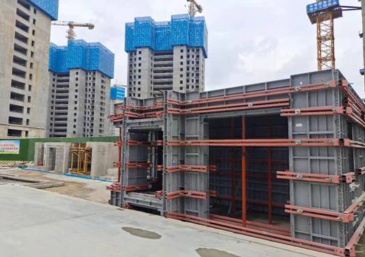 鋁模的快拆系統(tǒng)、拼裝連接、支撐系統(tǒng)及成型后的觀感;
