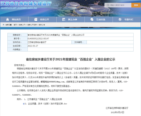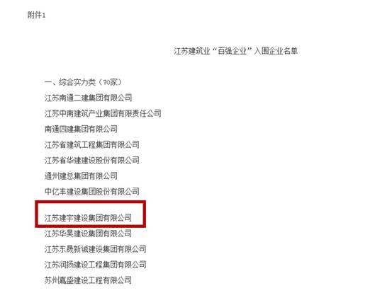 省“百強企業(yè)”認定工作是江蘇省住房和城鄉(xiāng)建設廳、江蘇省統計局、江蘇省商務廳為激發(fā)建筑業(yè)企業(yè)改革創(chuàng)新、轉型發(fā)展的積極性、主動性和創(chuàng)造性,擦亮“江蘇建造”品牌而聯合組織開展的,分為綜合實力類、建筑裝飾類、建筑外經類、建筑安裝類、基礎設施類、建筑鋼結構及其他專業(yè)類六項。該獎項綜合考量了多方面指標數據,全面反映了企業(yè)的發(fā)展情況。