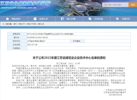 近日,江蘇省工業(yè)和信息化廳、江蘇省住房和城鄉(xiāng)建設(shè)廳以蘇工信創(chuàng)新〔2022〕331號(hào)文件公布了2022年度江蘇省建筑業(yè)企業(yè)技術(shù)中心認(rèn)定名單,集團(tuán)公司名列其中,成功獲批省級(jí)企業(yè)技術(shù)中心, 標(biāo)志著集團(tuán)科技創(chuàng)新工作取得了重要突破。