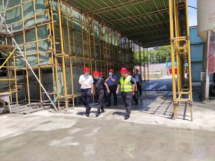 楊斌副主任一行在董事長管民良的陪同下深入項目一線工地進行了細致了解,項目負責人柏甫彥向楊主任一行匯報了工程概況、項目建設進度、質(zhì)量管理、安全管理、現(xiàn)場文明施工、揚塵管理、疫情常態(tài)化防控等情況。