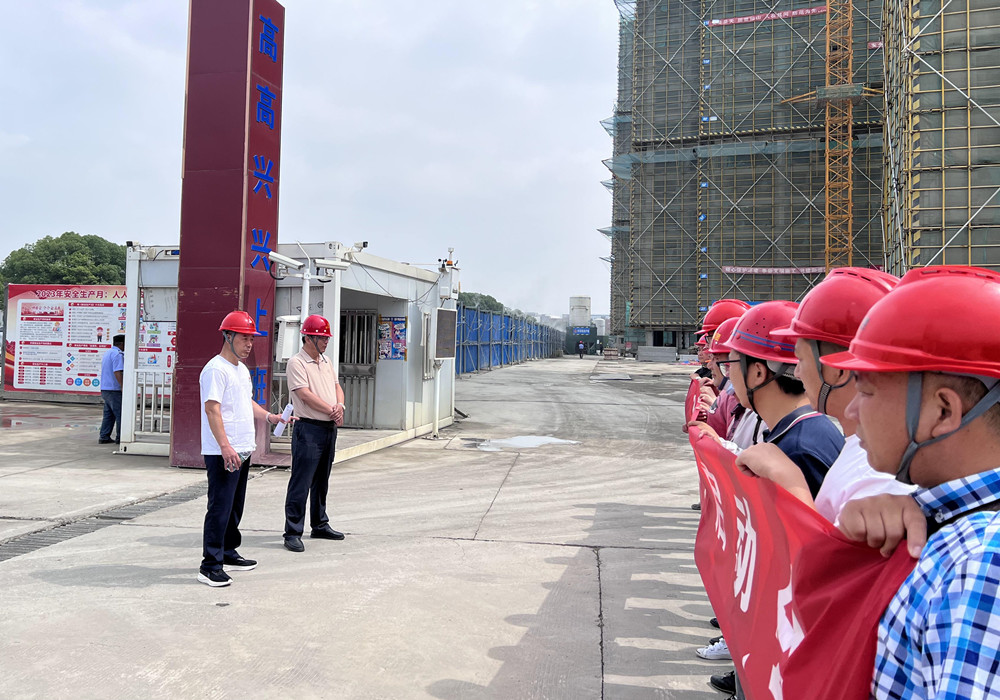 活動在無錫29號地項目現(xiàn)場舉行,集團副總經(jīng)理張幫華、張?zhí)焯夜餐瑔影踩a(chǎn)月活動。張?zhí)焯覍Ρ敬位顒幼隽藙訂T講話,要求所有參會人員高度重視本次活動,按照分工認真履職檢查,發(fā)現(xiàn)亮點,找出不足,不斷提高自身的安全意識和管理水平。