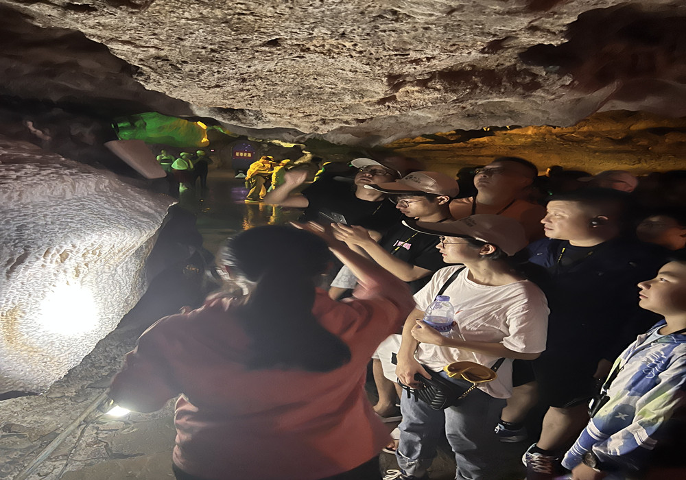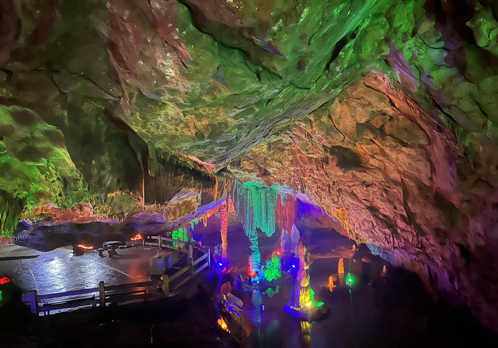 洞內(nèi)冬暖夏涼,正是夏日避暑的好去處。旱洞內(nèi)光影變幻、奇景不斷,鐘乳奇石造型各異。水洞內(nèi)石景同樣瑰麗神秘、如夢(mèng)如幻,乘坐小船穿行其中,別有一番趣味。這里既有石的莊嚴(yán),又有水的靈動(dòng),讓人流連忘返。