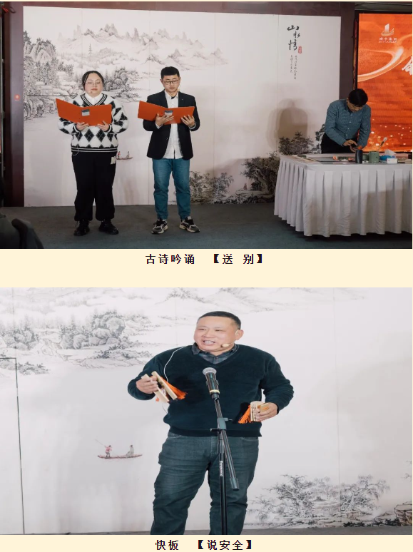 詩朗誦《筑夢(mèng)之路》、古詩吟誦《送別》、小品《查抽煙》、快板《說安全》、口琴獨(dú)奏《女兒情》、大合唱《大中國(guó)》、《明天會(huì)更好》、獨(dú)唱《攙扶》等元素多樣、精彩紛呈的節(jié)目把年會(huì)氣氛不斷推向高潮,贏得全場(chǎng)熱烈掌聲與喝彩。