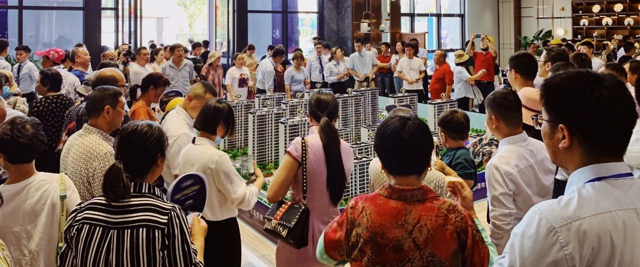 盡管當天的最高氣溫有36℃,但現(xiàn)場氛圍火爆異常,北湖藍灣的營銷中心內(nèi)外擠滿了前來看房的市民,公開儀式開始,董事長管民良攜手恒通集團董事長陳有川等領(lǐng)導共同為營銷中心啟幕,隨著營銷中心大門徐徐打開,迫不及待的買房人如同潮水般涌入銷售大廳。